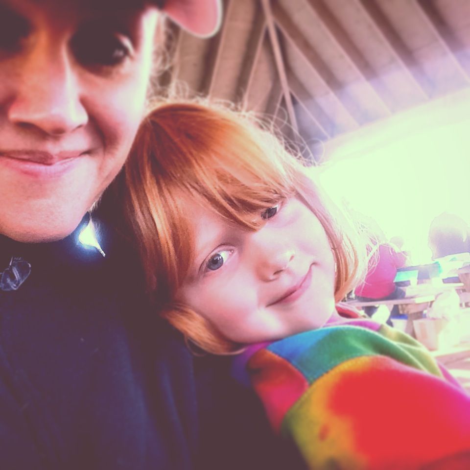 Miss L was less than thrilled to wake up early on a ‘stay home day’ (“Mommy, is it the middle of the night??” she asked groggily when I roused her). But by the time we were in the car and she was eating her breakfast PB&J toast sandwich and drinking milk out of her Thermos, she was ready to go and be of service as a volunteer at a local charitable 5k race.