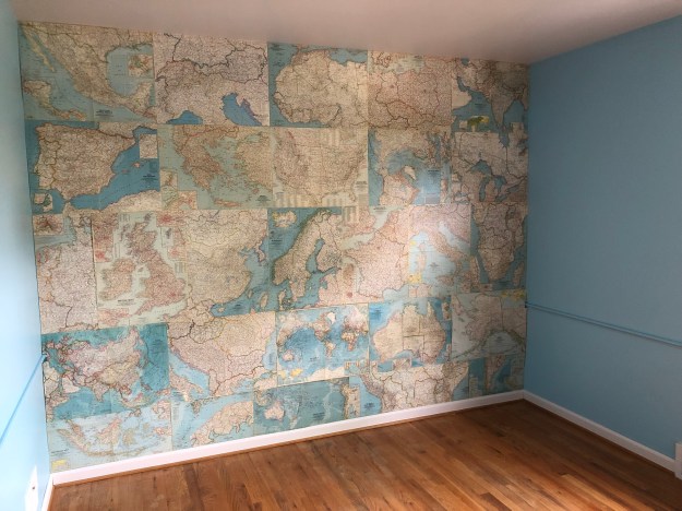 Brandon has been working in Miss L’s old room to paint and put up his map collection in preparation for it to become his new study. He’ll be building shelves next. We hit up the hardware store for some supplies and I stocked up on finch socks because the little golden birds have already stripped my coneflowers.