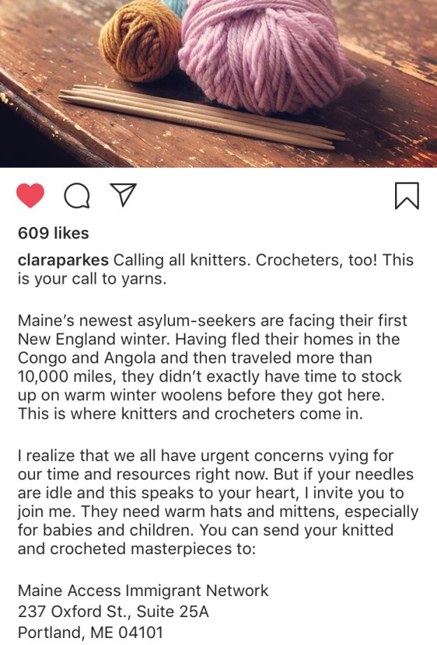 Our knitting / crocheting skills are needed! I’ll be ceasing my sweater knitting to cast on for a quick hat and some mitts to send.
