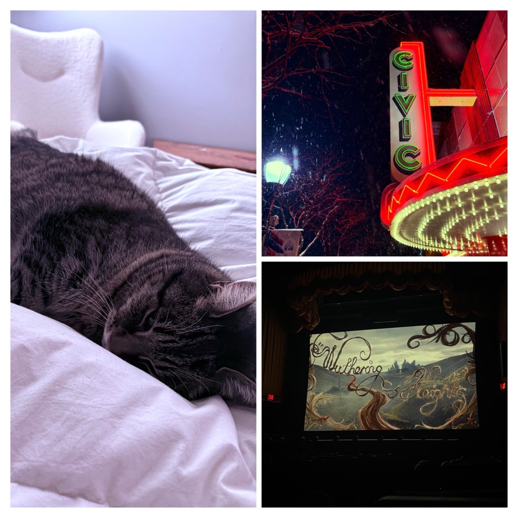I haven’t seen a movie in a theater for quite awhile but if there’s some sort of Gothic (or Regency or Victorian) epic sprawl playing, I’m up for it. (I think my last theater trips were for ‘Nosferatu’ and the big screen revival of the 2005 ‘Pride and Prejudice’ starring Keira Knightley’s collarbones.) My daughter was meh on the prospect of ‘Wuthering Heights’ but always likes visiting our retro 1920’s movie house and the idea of snacks and popcorn. She regretted her decision as she spent part of the film with her hands over her eyes and another part weepy (it was Heathcliff riding across the moors to Cathy’s bedside that did her in) despite my whispered protestations that these were really NOT great people and definitely NOT worth feeling sorry for. Her summary review through her muffled sniffles at the end: “Mom, that was two hours of bullshit.”