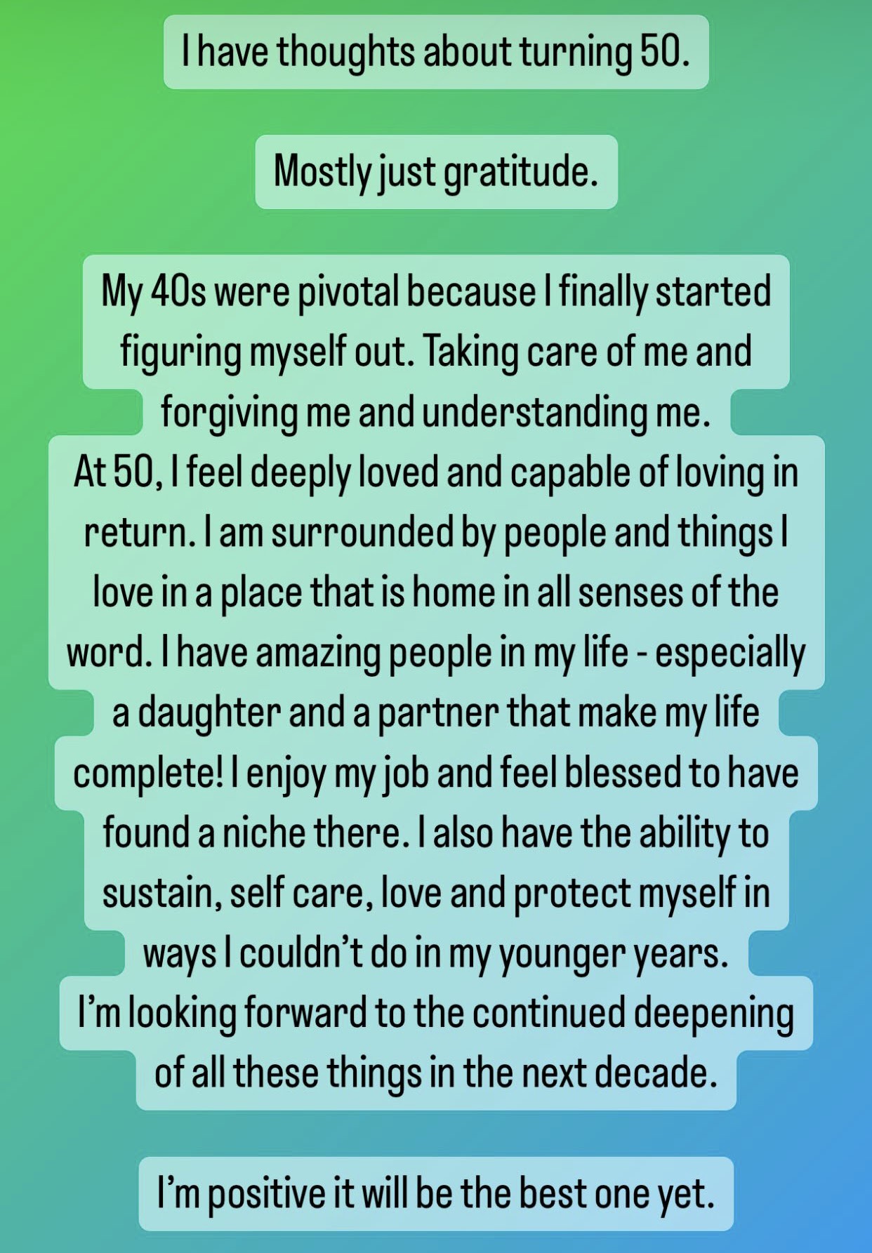 I think one of the things I like best about this time is that it allows me to imagine what life will be like when I’m less tied to a corporate life. Right now my path is clear – I work, and am well compensated, and I am responsible for my daughter, and my home, and our lifestyle. I tuck my yearnings away inside myself during my work weeks and find satisfaction in the life I have now and there’s a lot of it! I like where I work and I like walking into our building and saying hello to people I’ve known now for over 20 years. I like knowing the answers to things and I like my paychecks and our healthcare and my robust retirement savings and I like that when my daughter needs something I don’t have to think twice about it. All of these things are true blessings and I am thankful for them every day while at the same time knowing that I’ve worked really hard to get here. But I am also thankful that I can still see a life past these things, that there’s still a little spark inside me that dreams about buying a cabin in the woods of Sweden or retiring early to become a crossing guard. I don’t want to wish my life away by hoping that the next decade until retirement goes any faster than it has to. The universe has always put me where I should be to achieve the things I need and I am grateful- but in the meantime, maybe a little manifestation and dreaming can help it along.