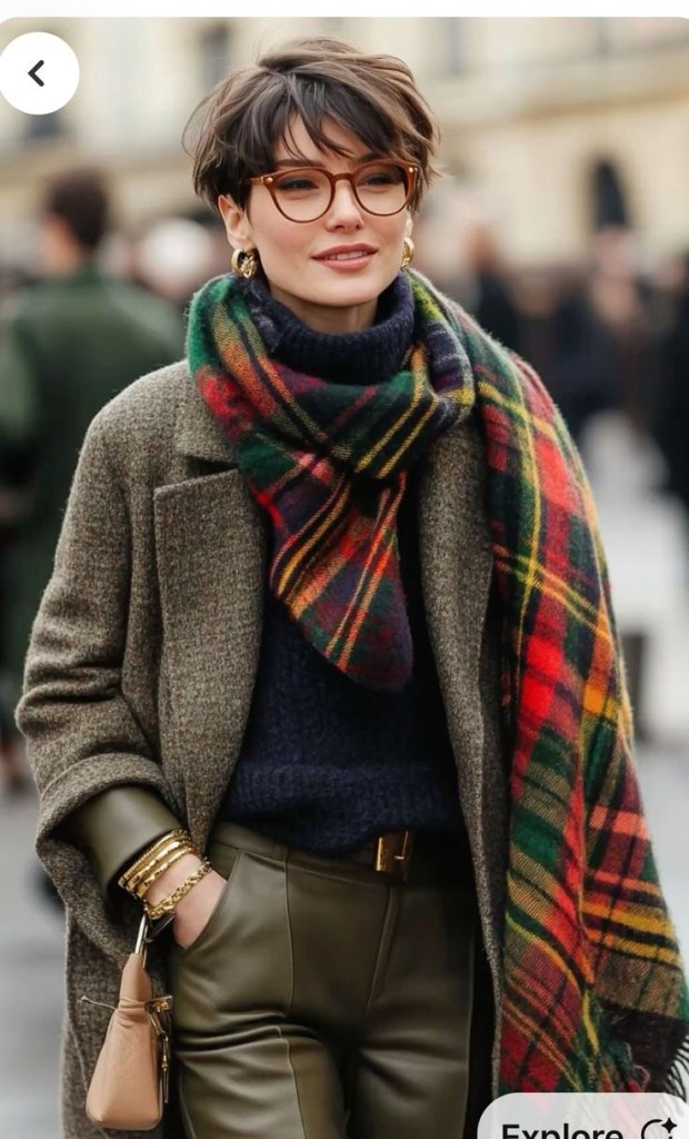I love this look. I have always wanted to be the kind of woman who could wear a little scarf around her neck like this and look natural but I’ve never been successful. This makes me want to try.