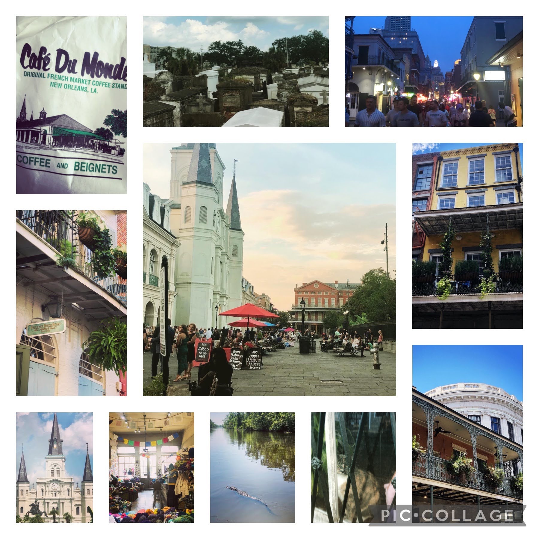 We did take a long weekend in New Orleans in June to celebrate school being out. It was ridiculously hot and in retrospect, a somewhat odd place to take a thirteen-year old. (Her first assessment is that it was dirty. LOL) But I love NOLA, the architecture and the history, and we tried to soak that in despite the 100+ degree swamp temps. We lounged in Jackson Square, went to the aquarium, went to Marie Laveau’s voodoo shop, had the kid’s fortune read, took an open top bus tour of the city (and got rained on), we ate tons of amazing food, and we ventured outside the city for a swamp tour and met Elvis Jr, an enormous alligator. We took a Dark History walking tour and learned all sorts of macabre tidbits, I found a knitting shop in the French Quarter (Quarter Stitch), and we visited a vintage book store (Crescent City Books). We fit a lot in during our time there.