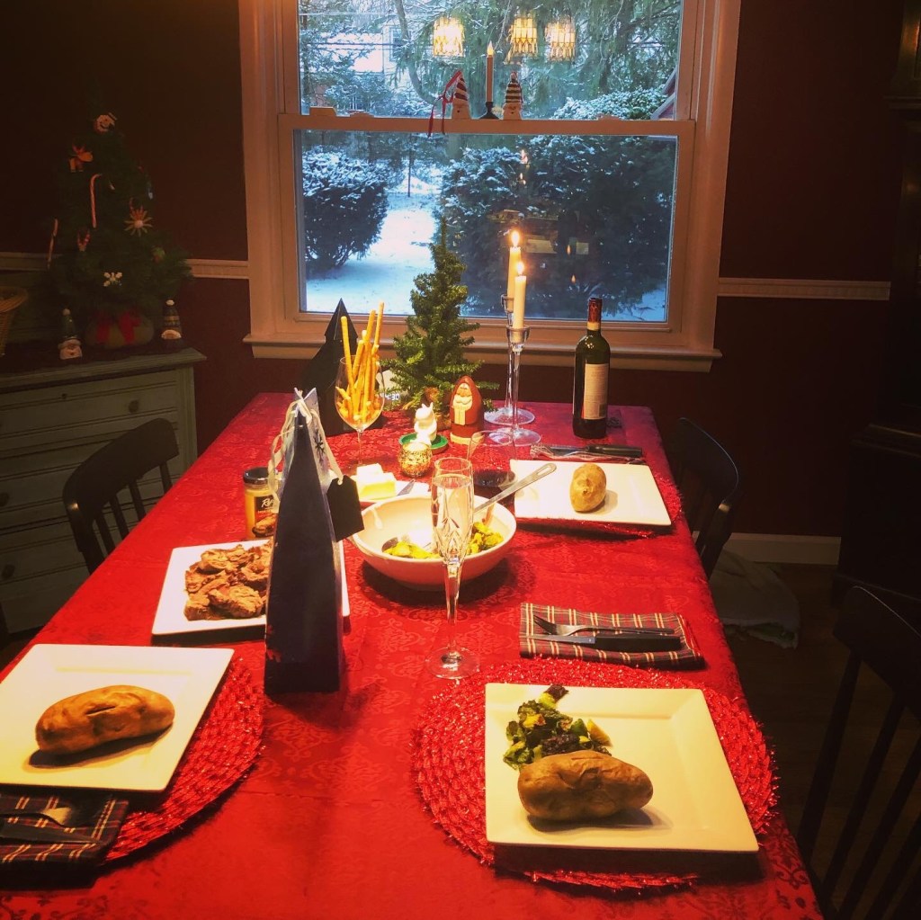 Taking great joy in celebrating the holiday with pleasures like a nice meal and a table with a tablecloth and our nice dishes and some candles, even if it’s just the three of us.